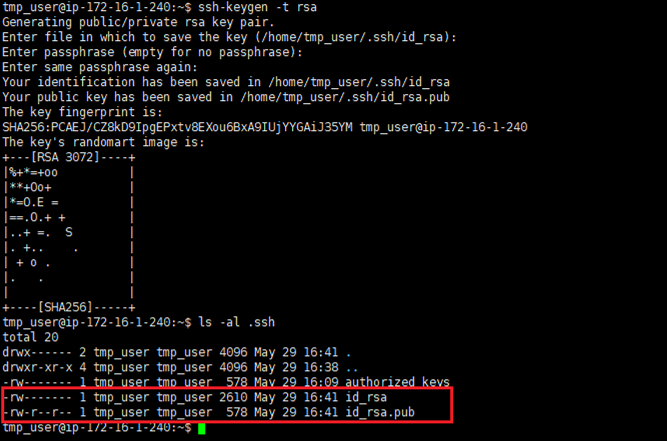 - id_rsa 파일을 사용하여 인스턴스에 연결
