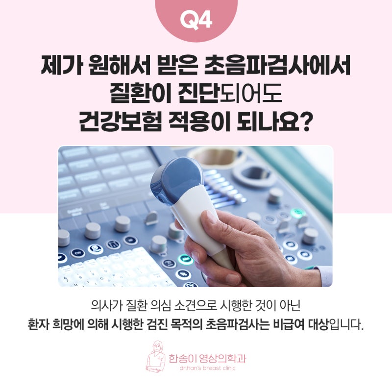의료보험 보장범위가 확대되면서 유방초음파를 보험에 가입할 수 있는 사례가 점점 늘어나고 있습니다. . 종양이 의심되는 경우(진단 시 1회) 초음파로 제거하지 않고 추적검사(추적검사)를 하면 건강보험에 가입할 수 있습니다. 또한 진단 당시의 영상을 비교하기 위해 수술 후 초음파를 제한적으로 시행하는 것은 일회성 혜택으로 간주될 수 있습니다. 유방초음파만으로 유방암을 진단할 수 있나요? 결과가 정확합니까?